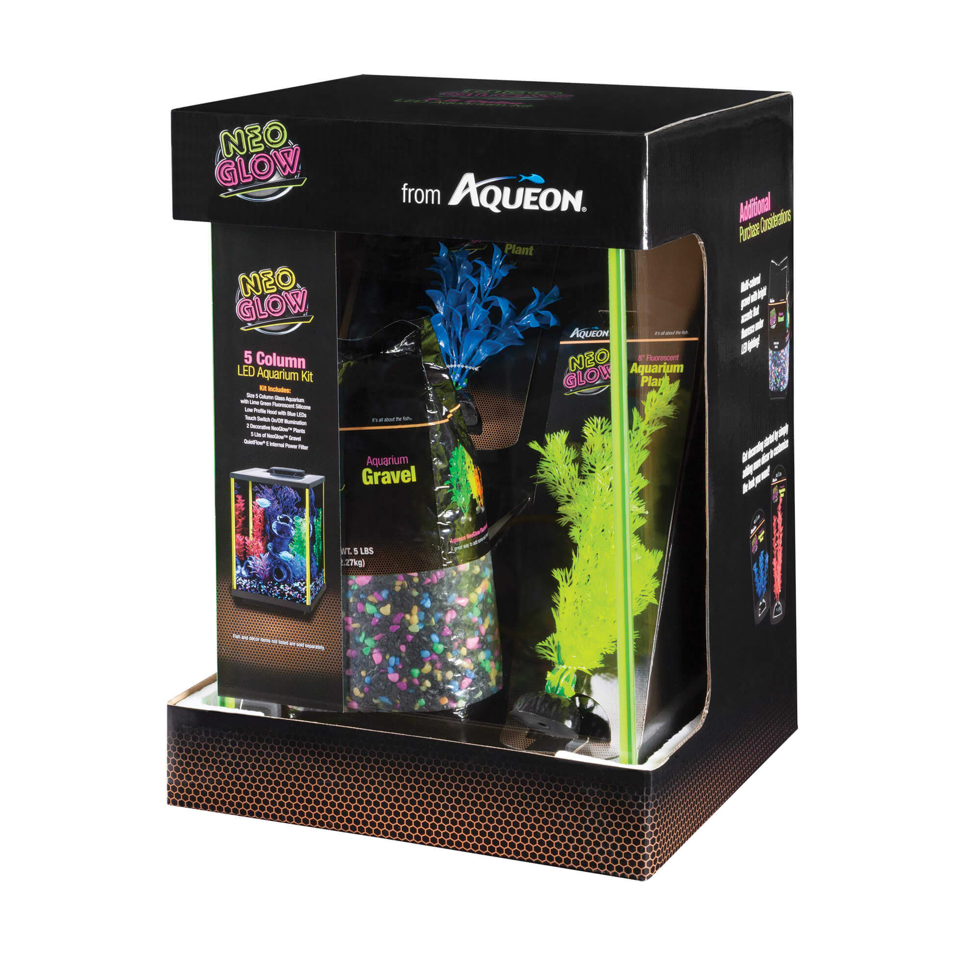 Each led lamp is easy to install and simply plug and snap into place inside the appropriately sized light. The 15 column led aquarium kit features a low profile led full hood that sits seamlessly over the aquarium frame for a stunning flat profile. Five watt bulbs can be used with the minibow 1 and fifteen watt bulbs can be used with minibow 2 5 and 5 0 aquariums. Aqueon replacement filter cartridges medium 4 7 out of 5 stars 1 008.